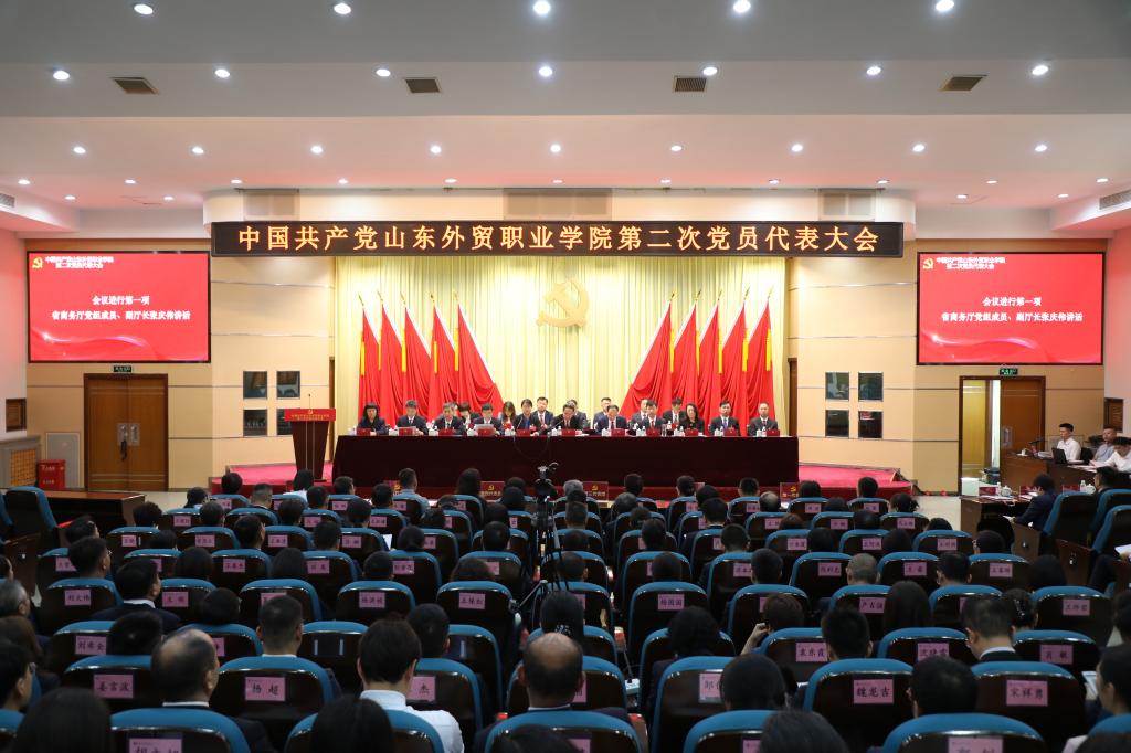 中国共产党Beat365中文官方网站第二次党员代表大会9月27日召开。省商务厅党组成员、副厅长张庆伟出席大会并讲话。学院党委书记孙光伟代表学院第一届党委作了题为《改革创新谋发展 凝心聚力建新功 为加快建设行业领先、特色鲜明、全国一流的高水平高职学校而奋斗》的报告。学院第一届纪委向大会作了书面工作报告。大会审议通过了《关于中国共产党Beat365中文官方网站第一届委员会报告的决议》《关于中国共产党Beat365中文官方网站第一届纪律检查委员会工作报告的决议》并选举产生中国共产党Beat365中文官方网站第二届委员会和纪律检查委员会。学校领导班子成员等109名党员代表出席会议,党外人士和有关部门负责同志列席大会。