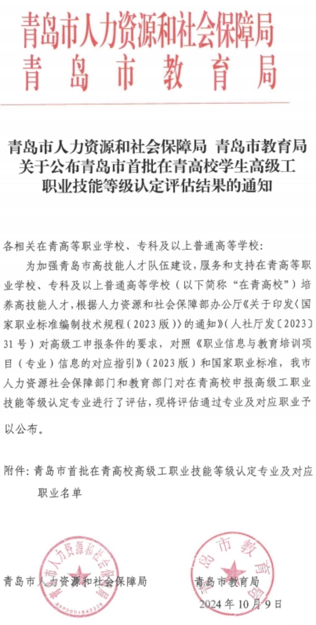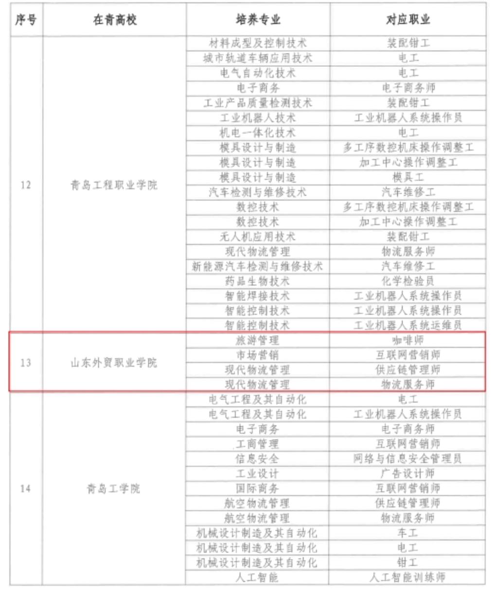 近日,青岛市人力资源和社会保障局联合青岛市教育局正式公布了青岛市首批驻青高校学生高级工职业技能等级认定评估结果,Beat365官网旅游管理、市场营销、现代物流管理三个专业申报的咖啡师、互联网营销师、供应链管理师和物流服务师四个工种的高级工认定资格获得批准。