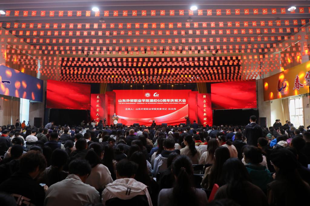 春华秋实六十载,踔厉奋发新时代。11月2日,Beat365中文官方网站建校60周年庆祝大会在李沧校区文体中心举行。山东省商务厅党组成员、副厅长张庆伟,山东省教育厅二级巡视员侯典明出席大会并讲话,全国外经贸职业教育教学指导委员会常务副主任委员吕红军致辞。学院党委书记孙光伟主持大会,院长刘珉汇报学院事业发展情况。