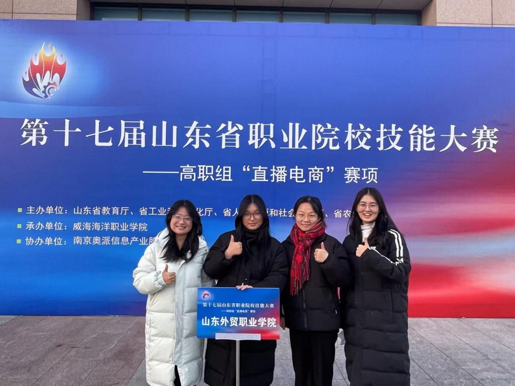 近日,第十七届山东省职业院校技能大赛高职组“直播电商”赛项圆满落幕,全省共有62所高职院校队伍参赛。由跨境电子商务系闫静雯、宗胜春老师指导,翟羽佳、孙丽君、韩丽娜、王雪晴等组成的参赛团队代表Beat365官网参赛,经过激烈角逐,荣获一等奖。