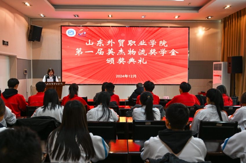 青岛英杰国际物流有限公司人事经理刘菡、人事招聘经理赵萍萍,学院副院长孙巧奎,学生工作处相关负责人,以及来自国际贸易系、商务外语系、国际运输与物流系的30名获奖学生参加典礼。