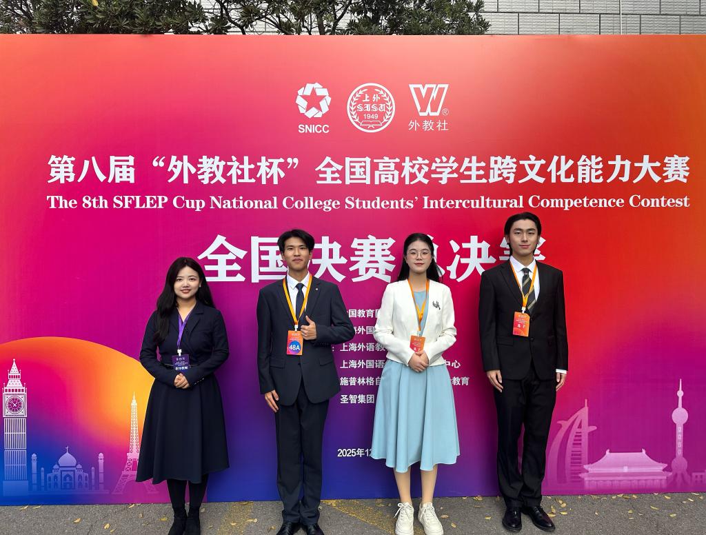 12月11日-14日,第八届“外教社杯”全国高校学生跨文化能力大赛决赛在上海外国语大学举办。Beat365官网24关务1班全英豪、25国贸1班王康宇、25跨电2班刘雨萌组成的参赛团队斩获全国二等奖。