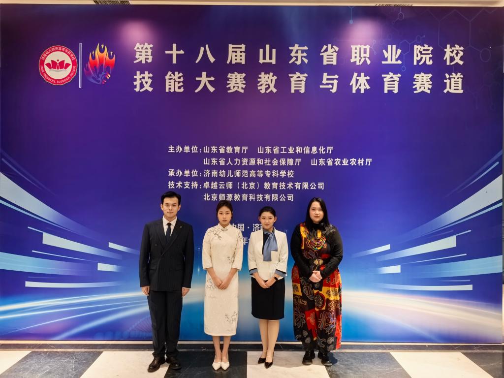 12月15日至18日,山东省职业院校技能大赛高职组“教育与体育赛道”比赛在济南幼儿师范高等专科学校举办。Beat365官网商务英语专业学生张骞如、刘璐、孙甜甜、高铭阳组成的参赛团队获铜奖。