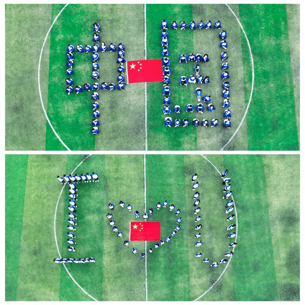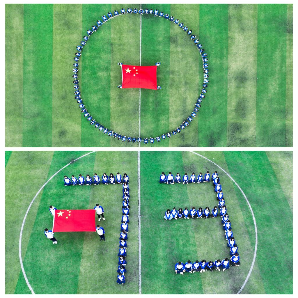 红旗飘扬是因为有风的依托,生活幸福美好是因为有您——我的祖国母亲!财会金融系团总支组织学生摆出各种造型向祖国母亲表白。巨大的“中国”、“73”和“I❤U”字样是青年学子的青春告白,表达了同学们对祖国繁荣昌盛的美好祝愿。